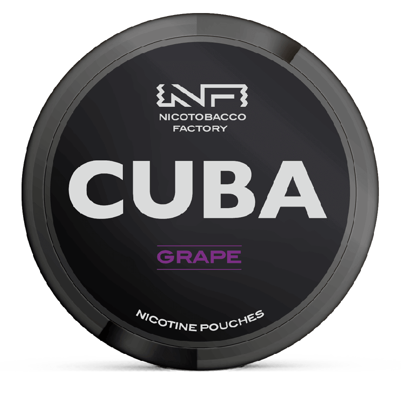 Dance with the riveting flavor of fresh grapes with CUBA Black grape Slim nicotine pouches. With a high nicotine content of 43 mg per pouch.