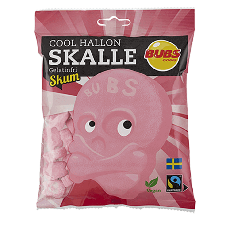 Bubs raspberry foam skull, is a sweet and sour pink foam, with the shape of a skull. It is candied with sour sugar and has a lovely chewy texture.Bubs candy was founded in the early 90s in Jƶnkƶping, Sweden as a small family business. Today, Bub's candy range is growing all over the world and especially in the US. BUBS is the first initials of the founders of the company, Bernt, Ulrik, Birgitta and Stefan. To pursue their dream of making the best quality candy, the family mortgaged their house and invested everything in their little candy factory! The factory was bought in 2023 by Orkla Confectionery & Snacks and now there is production around the clock and millions of kilos of sweets are made.