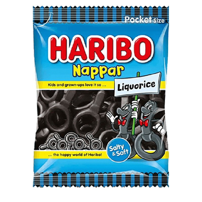 Haribo salty pacifiers have a distinct licorice taste that will not go unnoticed. Shaped like a pacifier, with a powerful black color and a chewing resistance that makes the taste stay long, chewy but not too soft.