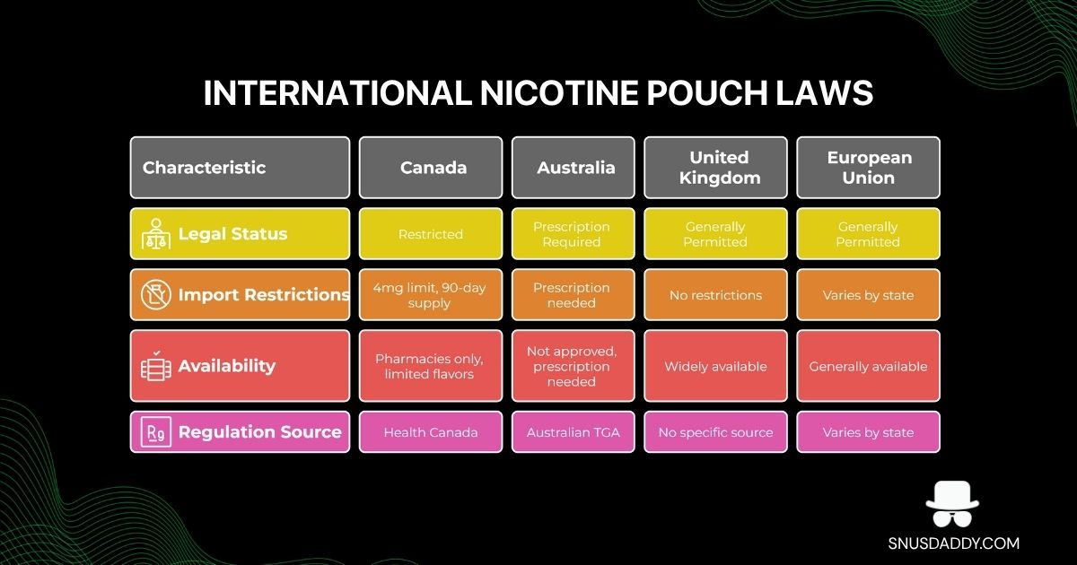 International nicotine pouch laws vary significantly between countries. Research destination regulations before departure to avoid confiscation, fines, or legal complications.