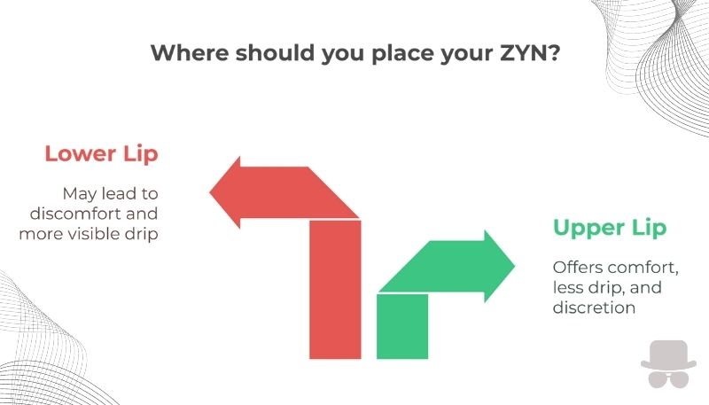 This guide provides a more detailed explanation of why the upper lip is the ideal location for ZYN placement, rather than the lower lip, as well as tips to ensure the best experience.