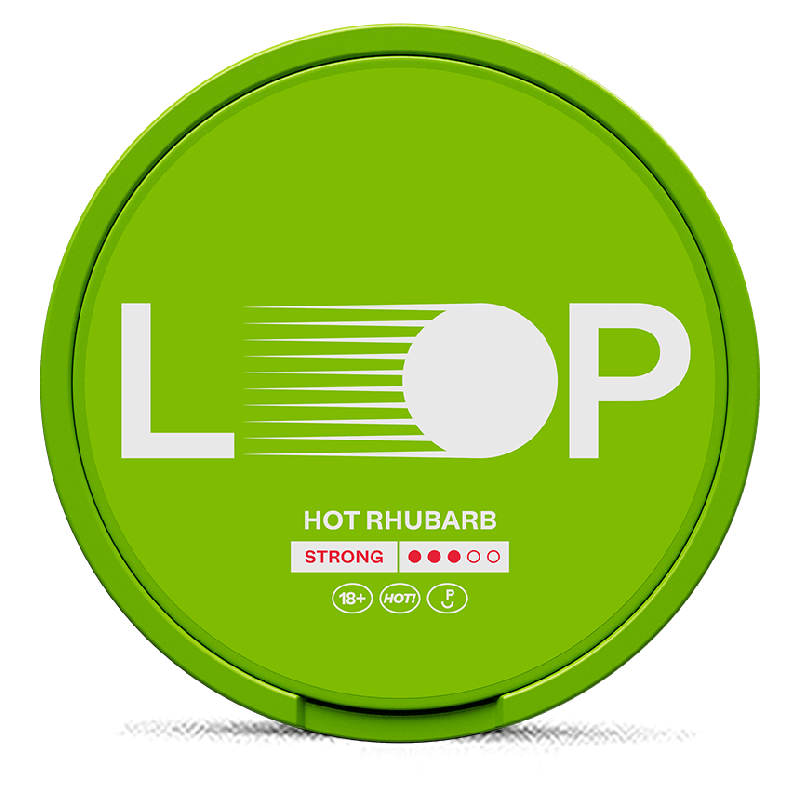Experience the bold fusion of sweet rhubarb and spicy chili with LOOP Hot Rhubarb Strong Nicotine Pouches. These premium all-white pouches deliver an intense flavor experience with a perfectly balanced 10.3 mg nicotine kick.
