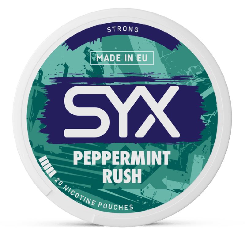 SYX Peppermint Rush 12 mg with a taste of cooling mint and peppermint.