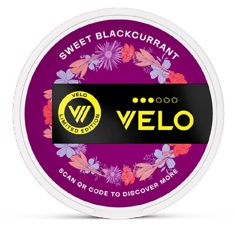 VELO Sweet Blackcurrant is a summer limited edition with the taste of ripe blackcurrants and a gentle hint of tartness. It combines a fruity and rounded berry profile with a strong nicotine content and a completely tobacco free composition in a comfortable slim format.